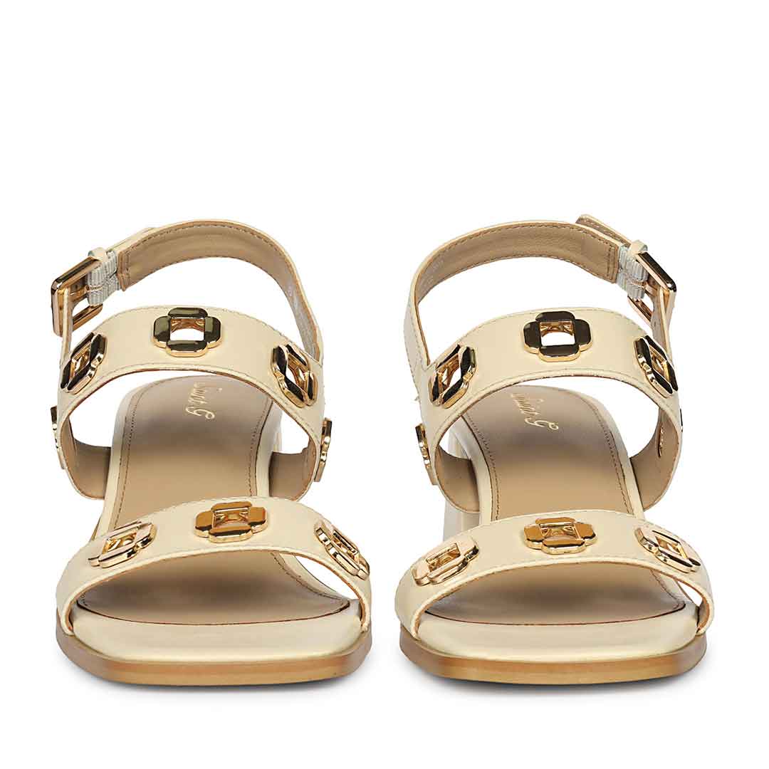 This Alviera off white heel reflects a bold and expressive feminine mood.