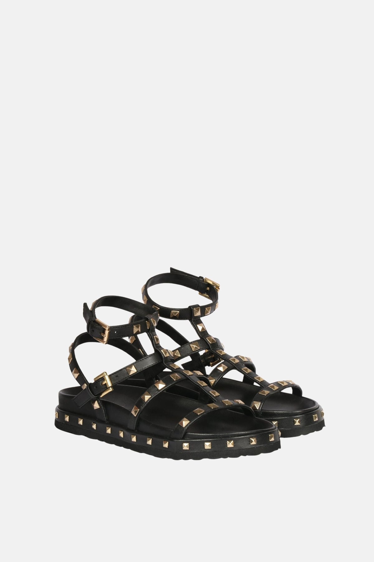 Elevate your seasonal wardrobe with the Saint G handcrafted leather strappy sandals, featuring metal stud accents that add a modern edge. These sandals include an adjustable ankle strap with a secure pin-buckle and an open toe design, complemented by studded straps and midsole detailing. The breathable leather lining and cushioned leather insole ensure lasting comfort while maintaining a sophisticated, timeless look. Perfectly blending feminine charm with a cage-style silhouette, these versatile sandals transition effortlessly from casual outings to elegant evenings. Crafted with precision, they embody luxury and refined style.