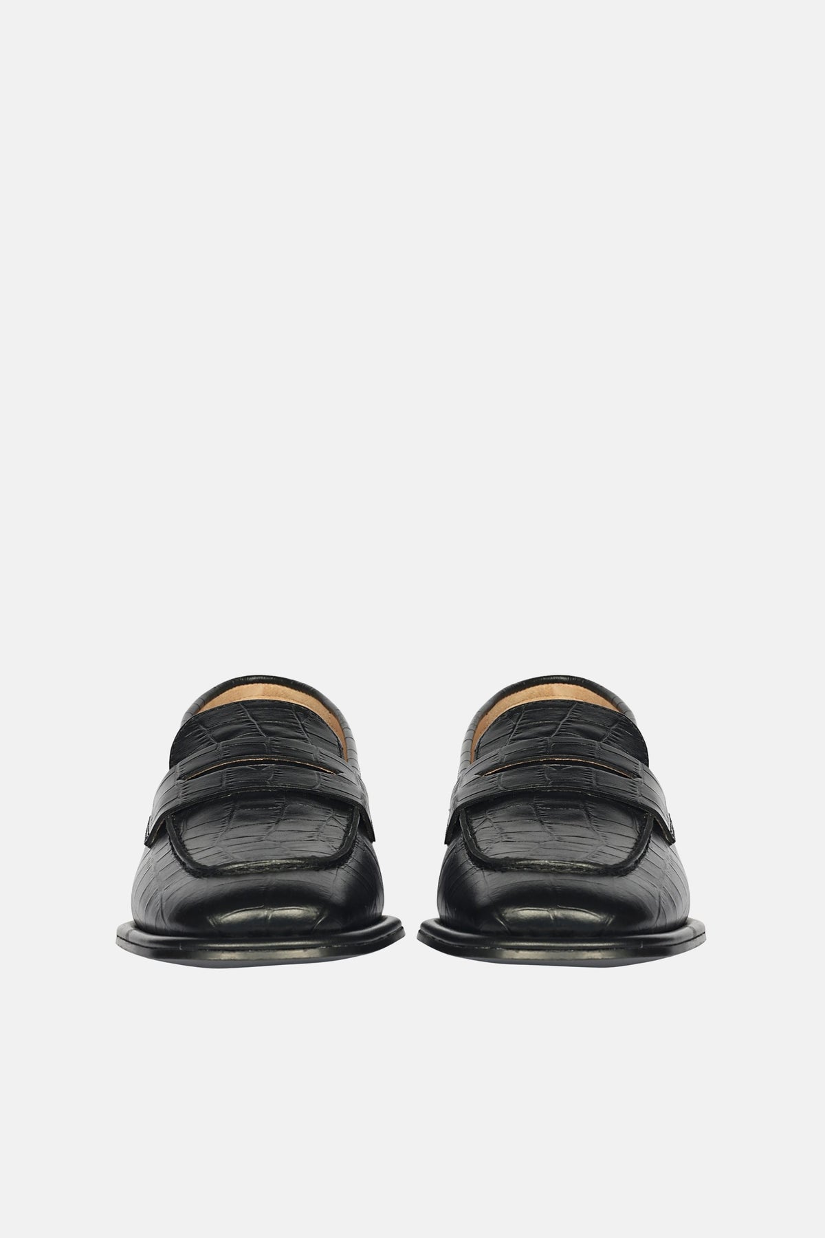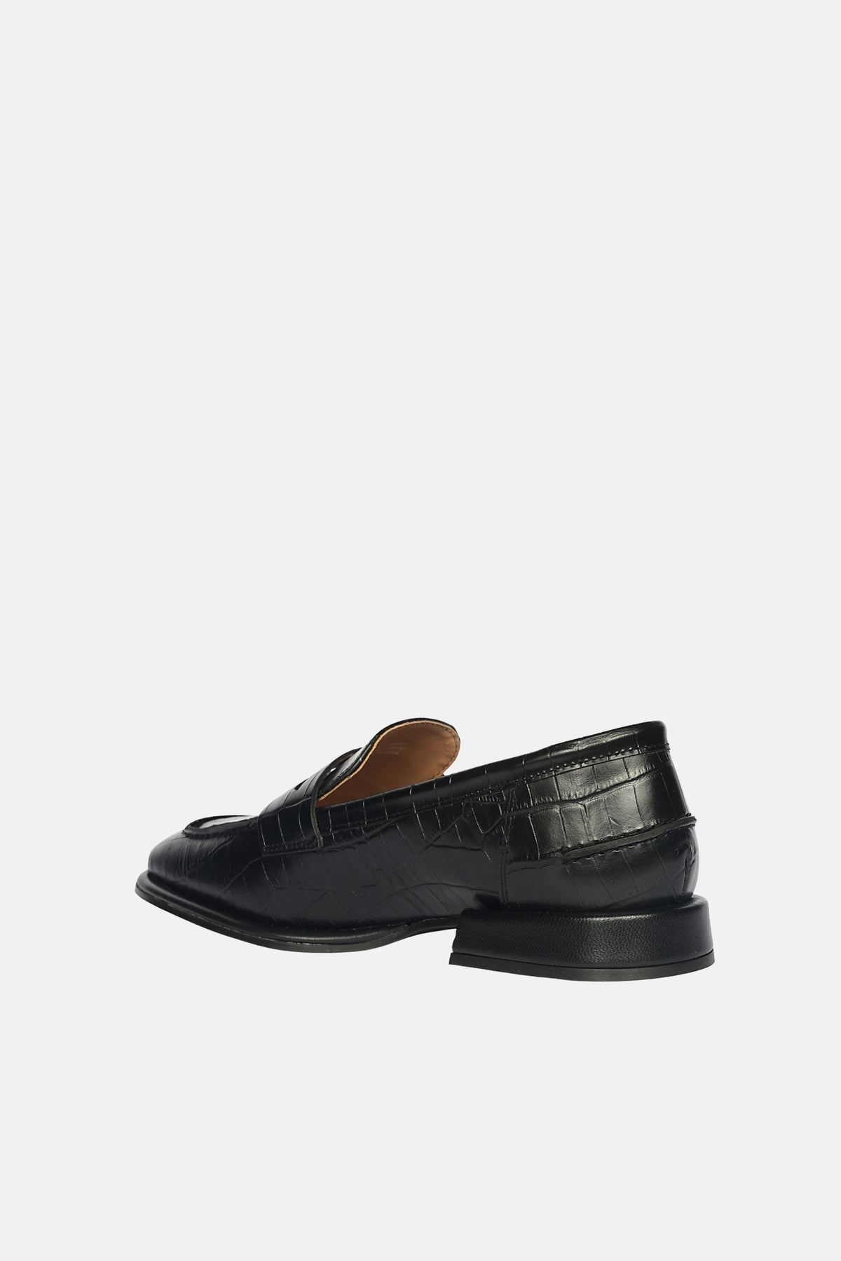 Striking in silhouette, bold in attitude. A masterclass in modern refinement. Wrapped in black croco-textured leather, the Carla is detailed with a classic saddle strap and a low heel. The sleek slip-on profile is lined in smooth natural PU, grounded by a polished tunit sole, and finished with discreet SaintG insole branding. Crafted for women who lead, not follow.