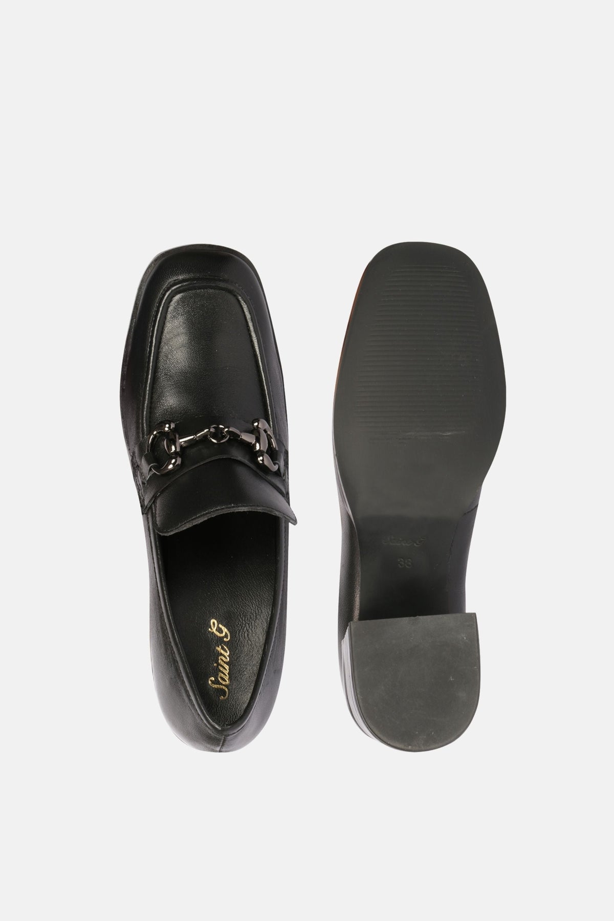 Saint G Isha Heeled Loafer in Soft Nappa Black Leather with Horsebit Detail – Timeless Sophistication Meets Modern Elegance