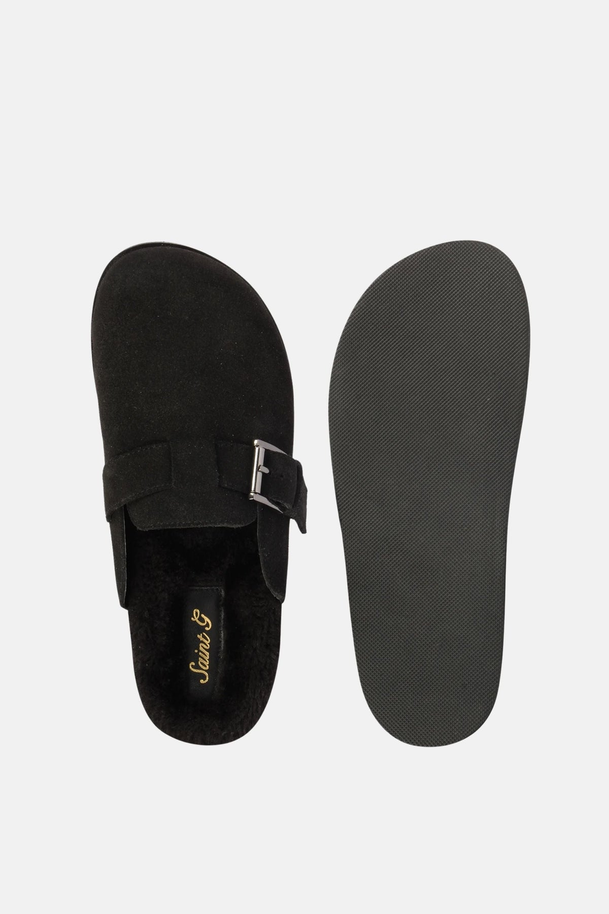 Saint G Levy Platform Shearling Suede Mule – Contemporary Elegance and Comfort in Genuine Black Leather