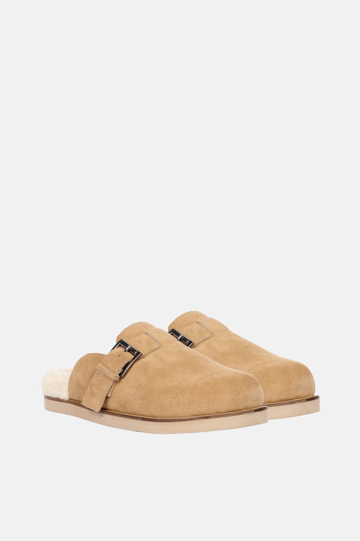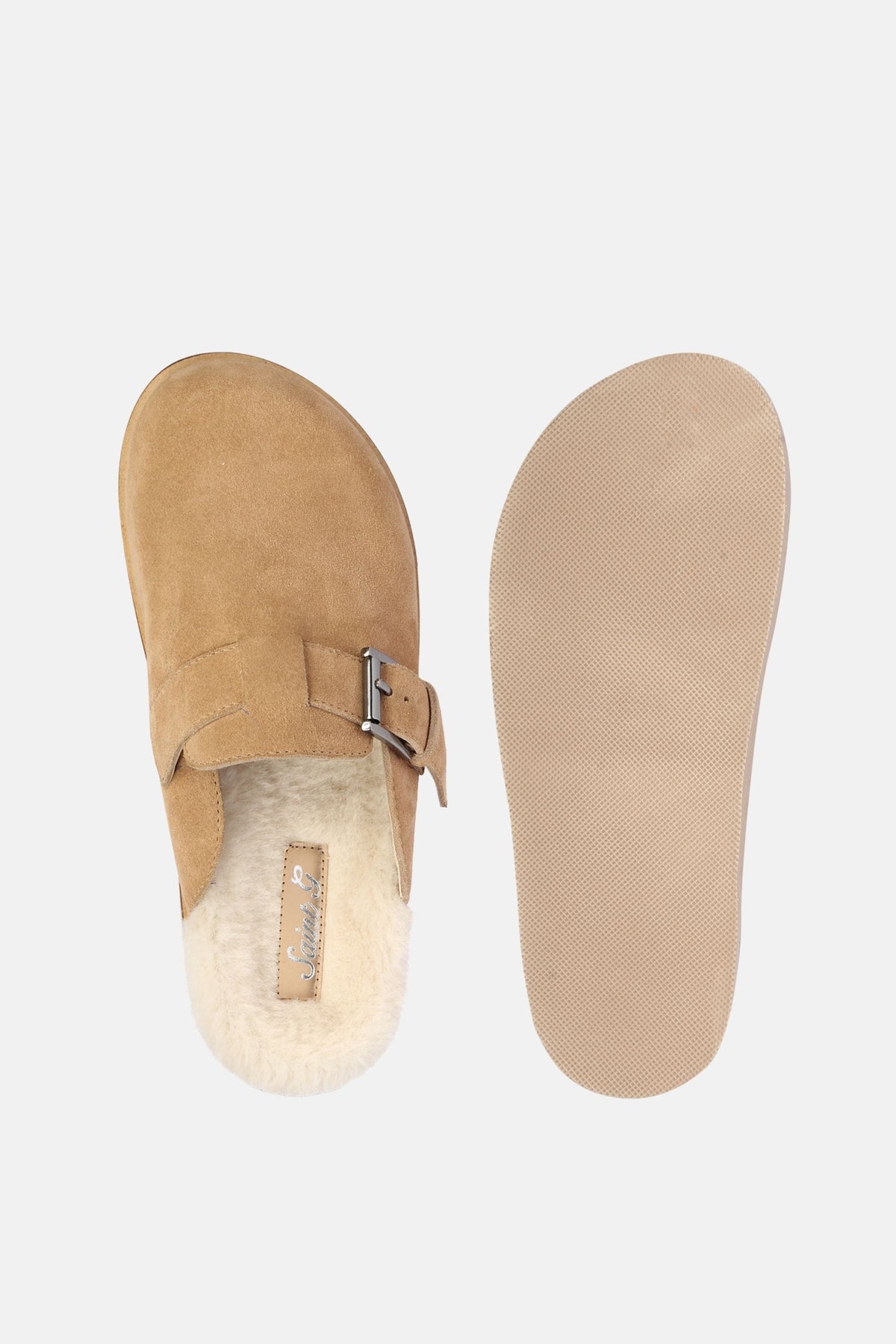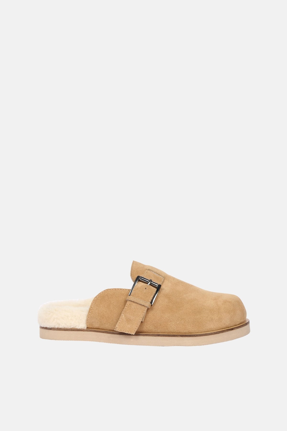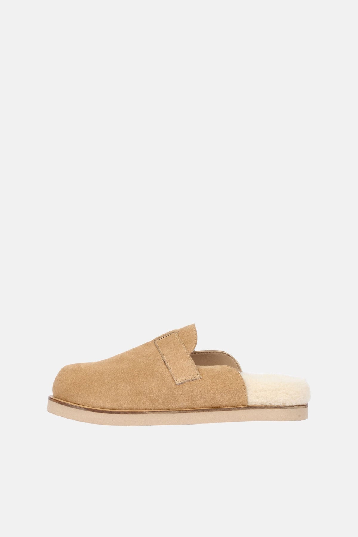 Saint G Levy Platform Shearling Suede Mule in Genuine Beige Leather – Effortless Elegance and Comfort