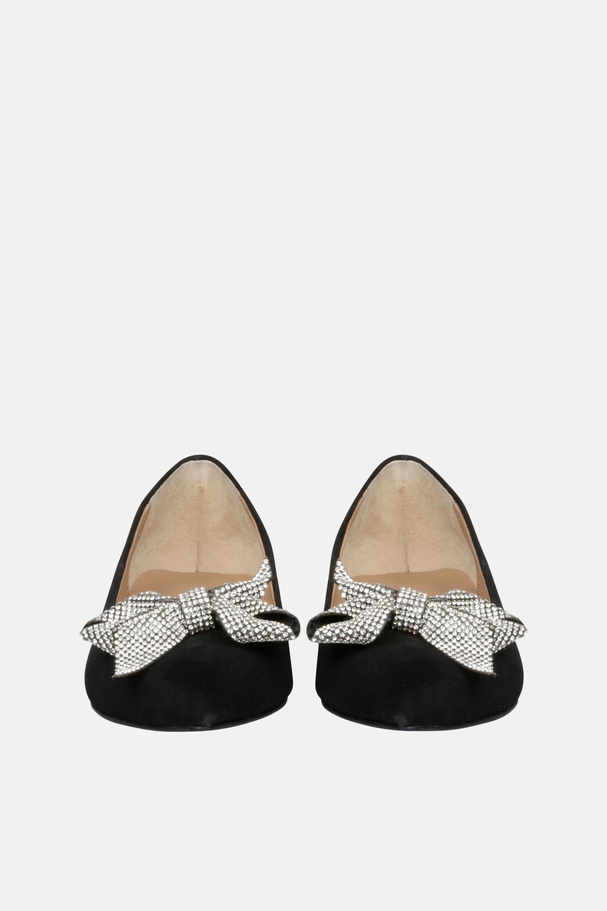 Saint G Perry Pointy Toe Ballerina in Genuine Suede Black Leather – Elegant Comfort Meets Glamorous Detail