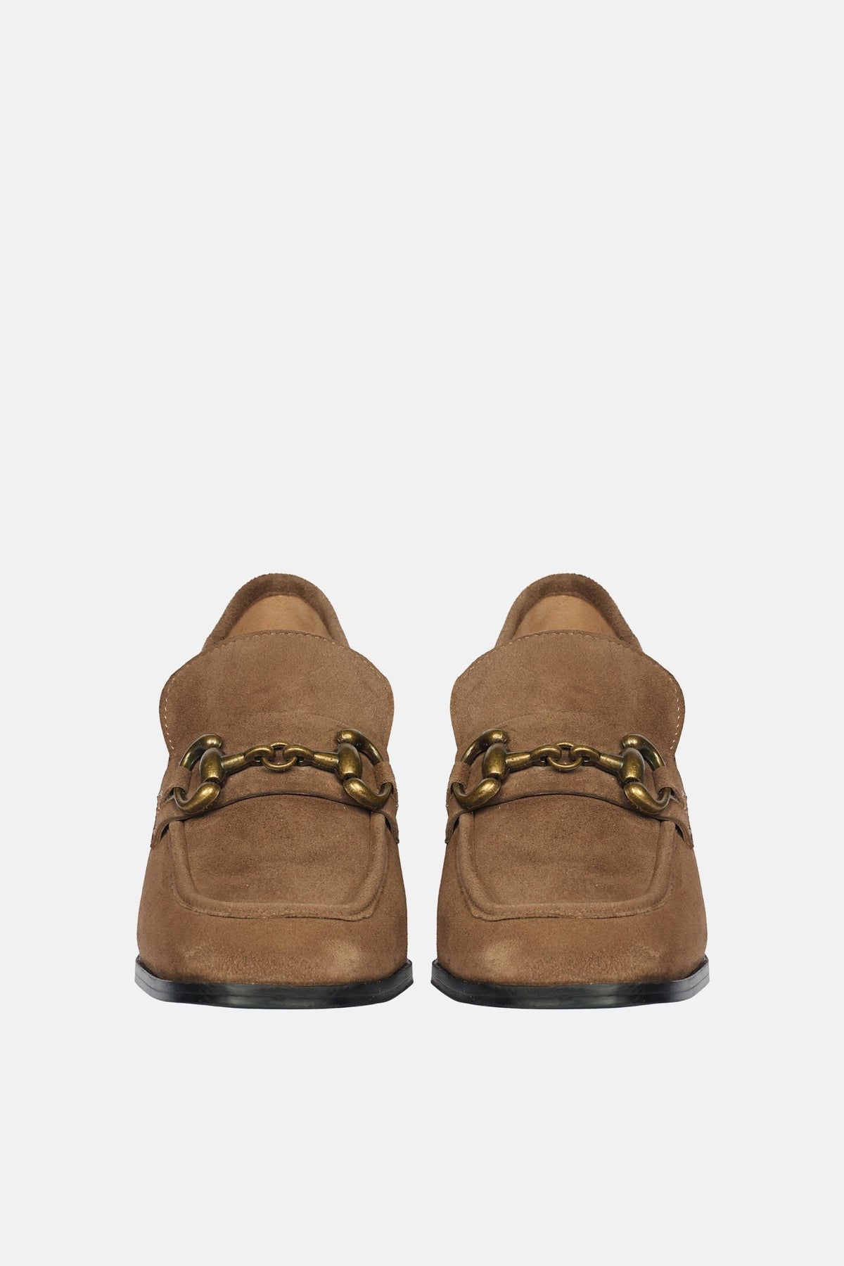 Soft meets structured. Crafted in rich taupe suede leather, the Vera mules feature a bold gunmetal horsebit trim, suede-wrapped heel, and a sleek tunit sole. Finished with SaintG insole branding, they’re understated, refined, and endlessly versatile.