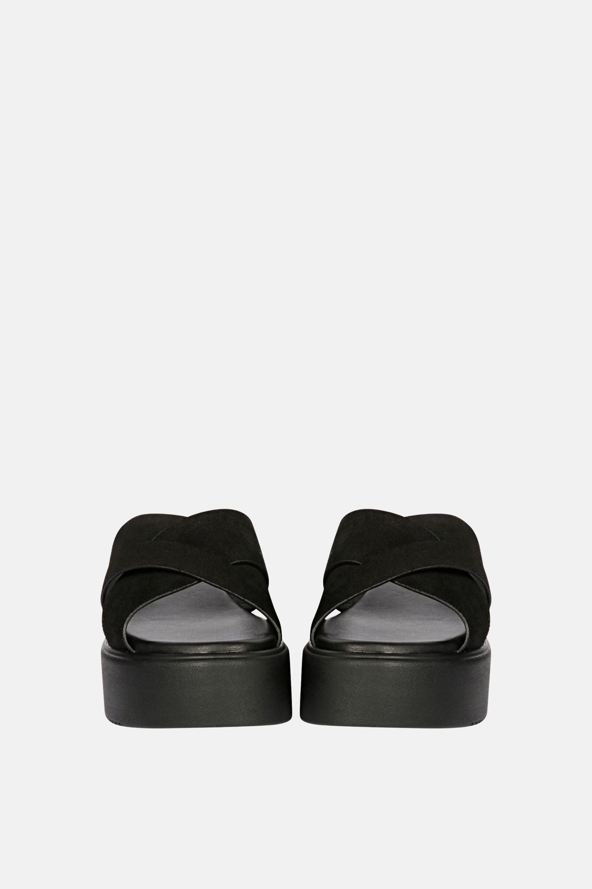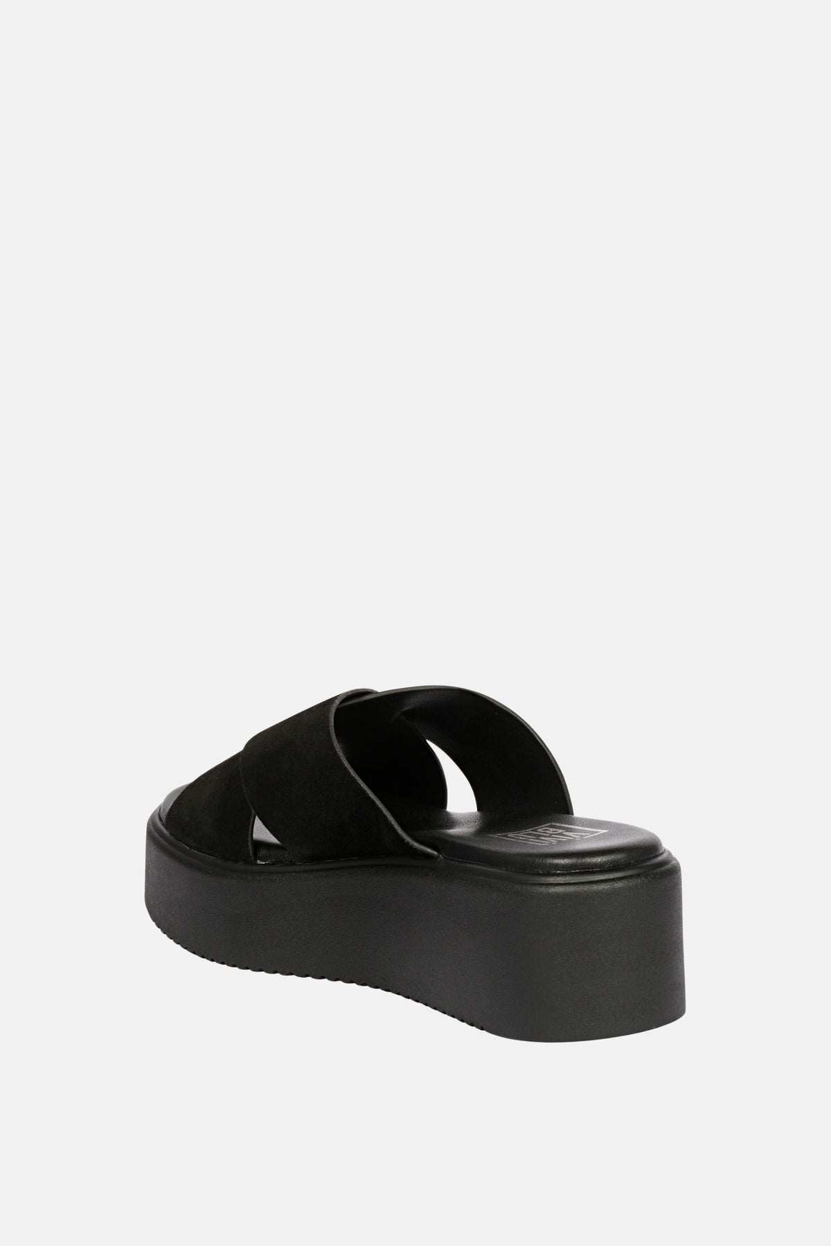 Experience luxury and quality with our Saint Yasmin Black Leather Criss Cross Platform. Crafted from a smooth suede leather upper and lined with soft leather for a premium feel, these sandals feature padded insole and covered heel for a comfortable and stylish look. Elevate your heel game with SaintG Luxe.