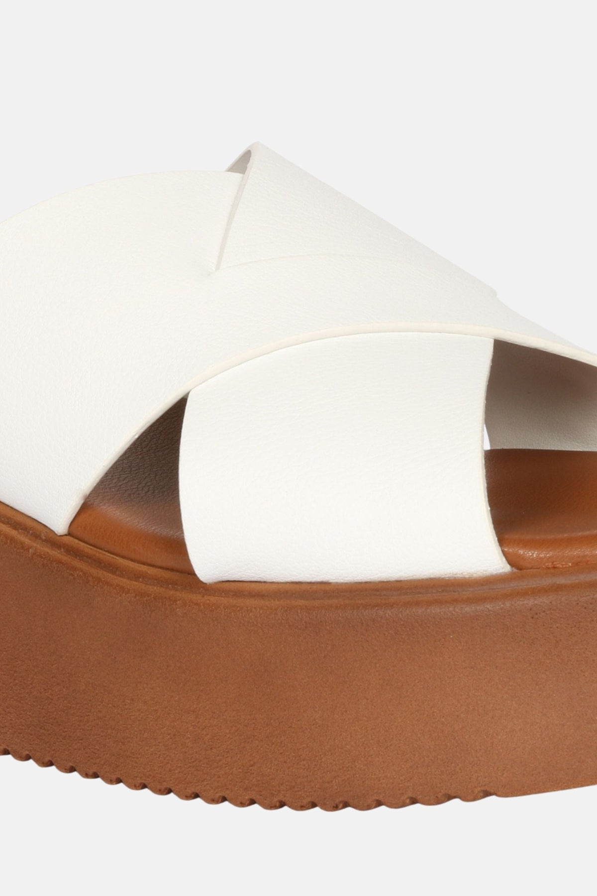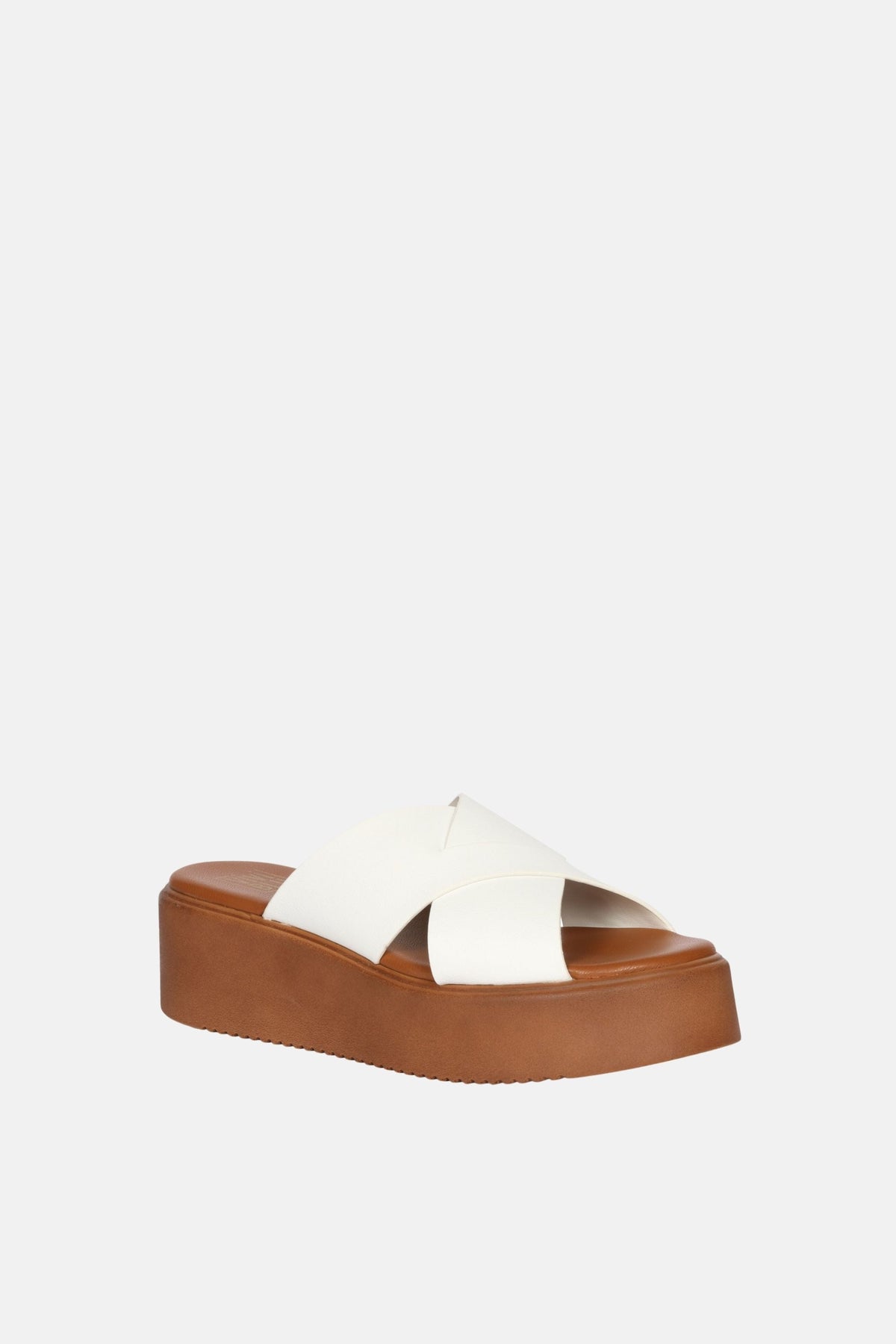 Experience luxury and quality with our Saint Yasmin White Leather Criss Cross Platform. Crafted from a smooth suede leather upper and lined with soft leather for a premium feel, these sandals feature padded insole and covered heel for a comfortable and stylish look. Elevate your heel game with SaintG Luxe.